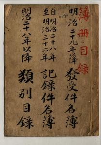 明治二十九年以降發受件名簿、自明治二十八年至明治三十六年記錄件名簿、明治二十八年以降類別目錄