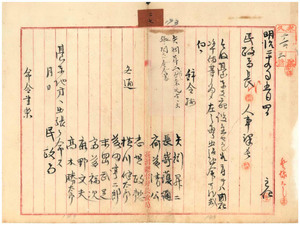 二七 矢矧昇二・長崎護通・斎藤清公・志賀政懿・横川健太郎・藤田亨二郎・末岡武足・富藤福次・鹿野文夫・高木勝太郎台東出張ニ関スル命令