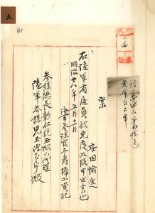 安田愉逸.鮫島盛陸軍省雇員ヲ免シ大本營事務囑託ヲ命セラレタキ旨上申