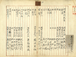一四 台湾派遣軍人軍属名 大島久直・伊藤祐義・松川敏胤・大井菊太郎・松石安治・林太郎・橋本勝太郎・井上蓮城・佐々木邦麿・吉川恭治・森林太郎・山田秀治・恩田重信・豊島陽蔵・児玉徳太郎・梅村金十郎・平野不二彦・山田良円・田中鎌助・柴五郎ノ外ニ陸軍属九名・従卒三名・馬丁三十九名・遠藤慎司・吉崎穣・杉村時中・和田正邦・黒岩友衛門・江形円浄・佐藤宜衛・丹野覚之丞・加藤平三郎・阿部源助・国分文蔵・坂梨雄蔵・中島龍卿