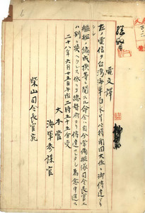 艦船編成換等ニ關スル常備艦隊ヘノ命令ハ總督府ヨリ伝達ノ件