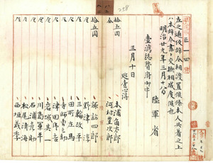 八二 巡査心得木浦角太郎・河村豊次郎・諏訪四郎・野津淳・三輪政平・田所庄馬・寺師勇之助・津田虎吉・岩城其一・川島軍平・石浦彦助・松尾清海・西垣義季・今泉熊之助・大畑清次郎・川原半之資・大川五郎・高橋九郎八・太田正之・村山庭橘・牧信形・窪矢之助・柏蕃弥・関君平・原田芳太郎・吉野繁一・塚越辰次郎・宇野一男・池田博成・杉部軽重・猿川直祥・後藤知一・中島鉄太郎・青木幹英・山田千松・上原宗一郎・三上喜千蔵・東恩納盛益・橋口市兵衛・真玉橋朝勇・山口秀一・図師軍吉・桑名季昌・吉原米吉・明神信輝・高牟礼東治・鎌形伊之助・