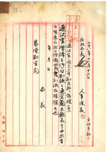 三二 通訳官上山忠正・平崎勢吉郎増給ノ件宜蘭支庁長上申幕僚副官ヘ移牒
