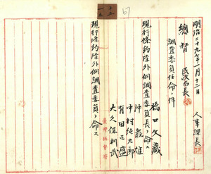 橋口文藏現行條約除外例調查委員長ニ沖龍雄外三名同調查委員任命