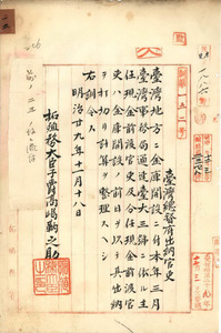 分任現金前渡官吏ハ金庫開設ノ前日ヲ以テ出納打切リ計算整理方拓殖務大臣訓令ニ付各廳ヘ通牒