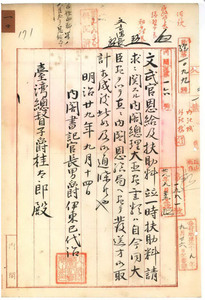 文武官恩給及扶助料等ニ關スル書類ハ內閣總理大臣宛恩給局ヘ送付スヘキ件