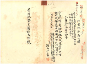 酒勾十太郎砂金採取許可並窪田洋平外二名〔伊地知季照、簑輪季馨〕不許可ノ件