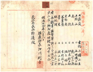 二五 撫墾署書記小幡小吉・山田健之助・乾官太郎・伊木壮之助・池上好三・吉野新之助・碇山安邦・平山庄八郎・西種彦分任収入官吏ニ台北県属宇田川信備・川南亀之助前渡官吏任命ノ件