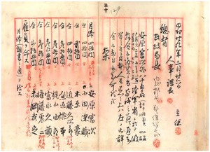 二九・三〇 日本語講習員ノ安原富次・小田深蔵ヘ、書記ノ木原豪・近藤久次郎・魚返煥平・梶山由郎ヘ、衛生員ノ富永久蔵ヘ、戸籍員ニ権藤震二・末岡武足ヘ、巡査心得ノ石川文次郎・藤村源太郎・石井熊太・橋本政次郎・今田始祐・服部亰蔵・松尾常造・山岡正・西川喜之助・山本米次・秋山善一・山口勇太郎・水上源吉・田内徳次・山川誥輔・荒沢光儀・根津恬如・浅井三平・神部隆之助・棚橋正憲・水野広太・林学進・徳弘慶太郎・小川仁・池上直熊・宮本直衛・[鵜殿長則・鵜殿長晴]・草野一二・山名時斉・中島喜一郎・井手源次郎・樋口重次郎・能勢浩(1896/03/26);二九・三〇-一 元公使館一等書記官杉村濬ト、日本語講習員ノ多羅尾光利・三屋大五郎・赤松三代吉・小林茂・大島丑三郎・増田龍作・林元三郎・美和元一・芝山豊平・須田裏・津田政二郎・中堂謙吉・加藤元右衛門・丸山徳蔵・藍原新二・滋野邦次郎・伊原太郎・中山重治・嶋村和四郎・井上武之輔・浅井政治郎・富岡鐐太郎・松本恒徳・高木平太郎・戸倉広雅・前田孟雄・新家鶴七郎・花田大六・宇津木五郎七・提貞廉・坂根十二郎・笠井源作・益田精二郎・富田仙太郎・渡辺高市・菅野赫次・相沢源大夫ヘ、日本語書記ノ須田小五郎ヘ、戸籍員ノ日野荘司・四(1896/04/07)