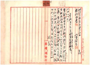 九 陸軍通訳中村義厚・山梅定政勤務辞令更ニ下付不相成旨台湾台南支部長ヘ申進