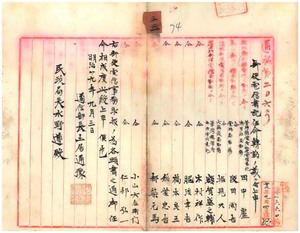 郵便電信書記田中盧外十一名所屬命令ノ件