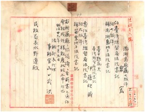 澎湖島廳屬泉宏外九名法院書記撫墾署書記鑑定吏雇等任命非職解雇又所屬命令ノ件