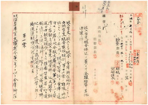 七 収入官吏現金払込ノ義ニ付各県知事、宜蘭・新竹・苗栗・彰化各地方法院長、雲林・埔里社・嘉義・恒春各地方法院長、淡水税関蘇澳出張所、叭哩沙・埔里社・恒春・台東・蕃薯寮・林■(土+巳)埔各撫墾署、宜蘭・雲林・埔里社・嘉義・恒春・枋寮・台東・蘇澳各郵便電信局、宜蘭・雲林・嘉義・恒春各国語伝習所ヘ通達(1897/03/13);七-一 収入官吏現金払込ノ義ニ関スル台南県知事磯貝静蔵稟申ニ対シ通達(1897/05/07)