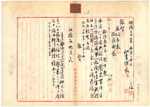 一二 土匪大稲?ヘ襲来事件ニ付仲木之植陸軍少将台湾守備混成第一旅団長謹慎・処分及ヒ拓殖務大臣高島鞆之助ヘ通知