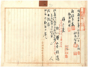 一七 勲八等山本■(金+圭)造民政局属ニ任シ七級俸財務部勤務