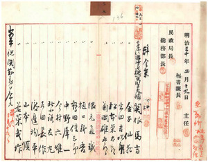 三七 税関監吏補関根馬吉・金子仙義・生田吉次朗・松本栄太郎・菊岡雄五郎・隈元通誠・樋口新吾・鶴田信三郎・中野犀一・今村六雄・北小路友丸・戸田長作・渡辺均平・山本順・若菜武作・森勇吉・本庄市太郎・牟田鉄一郎・筒井三野吉・黒柳謙吉・伊藤敬亮・阪本仙之助任命