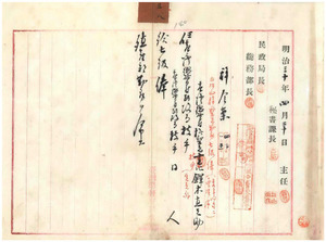 撫墾署技手鐸木直之助民政局技手ニ任シ七級俸殖產部勤務