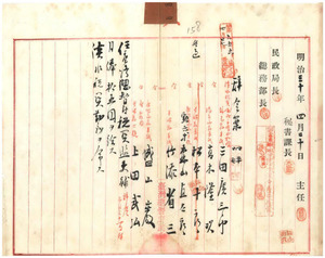 四四 三田広三郎・高木隆次・森山直太郎・竹添省三・盛山巌・上田武弘税関監吏補ニ任シ月俸拾五円淡水税関勤務