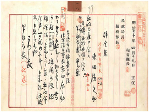 東田房之助民政局雇ヲ命シ月俸貳拾五円財務部勤務