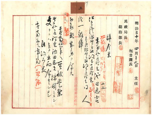 五 台南県通訳生池田忠吉民政局通訳生ニ任シ一級俸内務部勤務