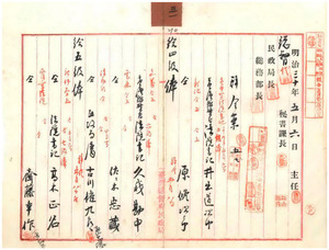 五一 法院書記井出道次郎・原修次郎・久我勘申・佐々木忠蔵・古川権九郎・高木正名・斎藤幸作・平山橘二・山田寿蔵・安田羊太郎・宮内廉作昇級