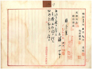 三浦小一郎民政局雇ヲ命シ月俸貳拾円財務部勤務
