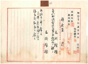馬淵維雄台北郵便電信局事務囑託ヲ解キ民政局雇ヲ命シ月俸參拾円總務部勤務