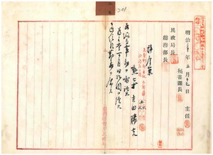 勳七等吉田勝吉民政局事務ヲ囑託ス一ケ月四拾円通信部勤務