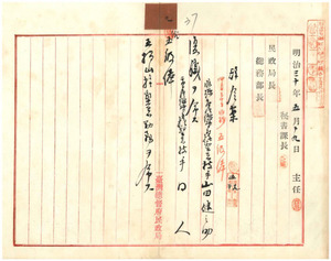 撫墾署技手山田健之助復職ヲ命シ五級俸五指山撫墾署勤務