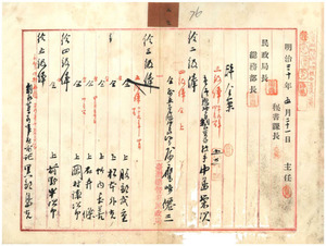 二三 製薬所技手中島栄治・鷹崎僊三・服部武重・松本外吉・竹内長善・石井条・岡村謙次郎・前野半次郎・黒部島吉・守屋応治郎昇級及任命