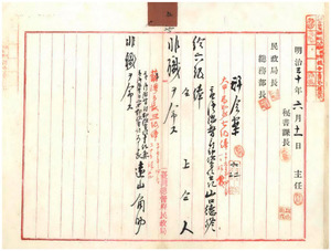郵便電信書記山口德修六級俸ヲ給シ非職郵便電信書記兼二等郵便電信局長遠山角助非職