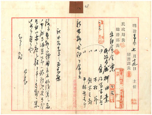 八 民政局属押田素・雇弥富半三郎・木村昇・鈴木重寿・平林卯吉郎新竹県ヘ出向