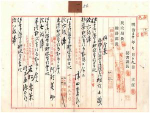 一〇 非職法院書記相沢由蔵、総務部勤務雇阿部善助、澎湖島郵便電信局雇小松茂富・津田重太郎・若松専策・種子島源太郎・武田壮一、山本祝三郵便電信局書記ニ任命