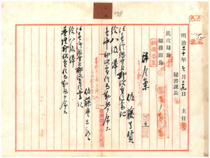 三五 佐藤了賢郵便電信書記ニ任シ八級俸台中郵便電信局勤務ヲ命シ佐藤豊三郎郵便電信書記ニ任シ八級俸基隆郵便電信局勤務ヲ命ス