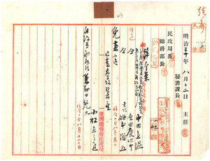 七 巡査看守教習所・教官兼民政局・内務部警保課・属中田直温・同原田慶次郎・同姫本渙五免兼官雇小松直之進民政局内務部兼勤ヲ免ス
