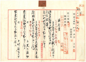 〔民政局〕屬武多鈴次郎郵便電信書記ニ任シ六級俸台北郵便電信局勤務