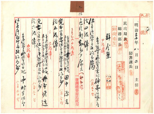 九 郵便電信書記神崎道太郎民政局属ニ任シ四級俸通信部勤務、同中村芳次郎同属ニ任シ五級俸同部勤務、同兼民政局属田中源吉同属ニ任シ五級俸同部勤務、同兼同局属井本修造同属ニ任シ六級俸同部勤務任命