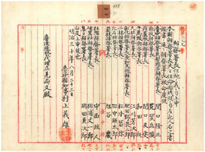 四四 弁務署長任地ノ件 台中県彰化兼和美線肥田野畏三郎・同■(山+胡)蘆屯関口友愛・同牛馬頭和田純・同社頭中西政人・同二林松本富弥・同北斗田中■(金+英)太郎・同大肚江川芳次郎・同埔里社相浦丈一郎・同員林旭谷巌・同南投荒賀直順・同集々岡田兼次郎・同台中兼犁頭店関口隆正・台南県噍吧■(口+年)中西義之・同湾裡瀬戸晋・同大穆降石川戈足・澎湖庁媽宮光永星郎・同小池角鳥取宗次郎・同大赤崁稲田綱吉以上十八名任地ノ弁務署長任命