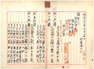 八二 属石川豊太郎・小菅正直・広瀬千代吉・雨宮房五郎・黒田惟允・春山直武・相良三熊・小池汀・中村彦一郎・原田智亮・木村・一郎・宮沢文次郎・井上健勝・長谷川豊三郎・原郁之亮・大竹猪寿・細野金之助・川村次郎平・鈴木善三郎・後藤虎次郎・岩瀬金三郎増給