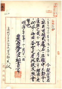五〇 元灯台所看守溝口嘉吉・宇南山次郎身分ノ儀ニ付農商務省・郵便為替貯金管理所ヘ回答