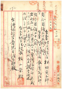 〔台南地方〕法院雇松田貞三郎外一名增俸ノ件