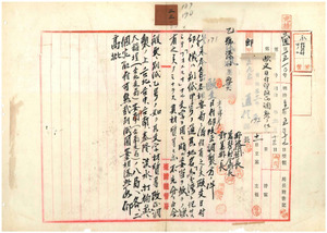三三 郵便電信局欧文日付印其地名「台湾」ト記サスシテ「フォルモサ」ナル文字ヲ用ヒルハ妥当ヲ欠キ材質水牛モ亦不充分ニ付改正調整ス