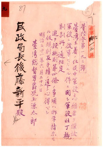 九 台湾土着住民軍役志願者撰抜ニ付軍役壮丁概則制定(1898/07/05);九-一 台湾土着住民軍役志願者撰抜ニ付軍役壮丁概則中追加(1898/09/05)