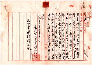 七-三(九) 製茶職工清国人・本島・上陸特許ノ件台湾事務局ノ照会ニ回答