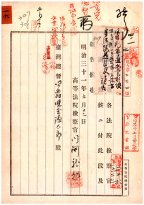 一六 総督宛ニテ進達スル普通文書ハ別ニ意見ヲ付スルノ要アルモノヲ除ク外高等法院検察官宛ノ添書ヲ要セサル旨訓令