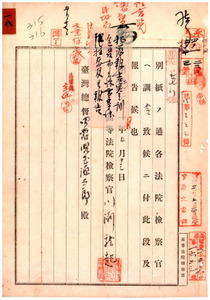 清國人ノ犯罪及清國人ニ對スル犯罪ニ付テハ特殊ノ者ヲ除ク外報告ヲ要セサセル旨訓令