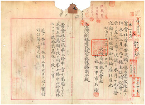 七 大阪商船会社定款中改正ニ付大阪商船株式会社社長田中市兵衛ノ届及基隆支店長交迭ニヨリ届(1898/05/02);七-1 大阪商船会社基隆支店長石原市松ヘノ委任状届(1898/05/04);七-二 日本郵船会社基隆出張所近藤勝之助ヘノ委任状届(1898/07/08);七-三 日本郵船会社基隆出張所近藤勝之助ヘノ委任状届ノ件ニ付同社社長近藤廉平ノ委任状(1898/07/09);七-四 大阪商船会社定款中改正同社副社長田中太七郎ノ届(1898/07/26);七-五 大阪商船会社社長更任田中市兵衛ヨリ田中太七郎ヘ届(1898/08/03);七-六 大阪商船会社員藤野玖三ヘノヘ委任照会所委任状(1898/10/13)
