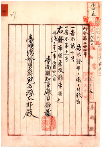 二 台南県告示第一〇号曽文渓ニ巡査派出所設置ノ件(1898/03/19);二-1 台南県告示第一一号蔴荳街ニ於テ天然痘発生ノ件(1898/03/19)