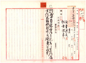 八 二十九年分京着任届書類廃棄(1898/01/13);八-1 本月十九日埔里社支庁出発本日到着 羽中田一太郎(1896/05/17);八-2 本月五日元鹿港出張所事務引継ヲ了シ七日同地出発本日到着 佐竹義和 (1896/06/11);八-3 本日一日基隆出発本日任地台東撫墾署ニ到着 曽根俊虎(1896/06/03);八-4 出張中ノ処本日帰着 平場徳太郎(1896/07/06);八-5 淡水ヘ出張中ノ処本日帰着 加藤景康(1896/07/07);八-6 鳳山郵便電信局ヨリ台北郵便電信局勤務ヲ命セラレ本日到着 水沢厳(1896/07/06);八-7 転地療養ノ処本日帰着 山口義耀(1896/10/16);八-8 転地療養ノ処本日帰着 森本庄一(1896/10/01);八-9 当府ヘ出向ヲ命セラレ本日到着 秋本新蔵(1906/11/18);八-10 基隆ヘ出張中ノ処本日帰着 守屋応四郎(1897/04/17);八-11 基隆へ出張中ノ処本日帰着 武田修輔(1897/04/15);八-12 基隆へ出張中ノ処本日帰着 浜野弥四郎(1897/04/15);八-13 台南県へ出張中ノ処本日帰着 山口秀高(1897/05/04);八-14 台南県ヘ出張中ノ処本日帰着 広瀬千代吉(1897/05/05);八-15 転地療養ノ処昨十六日帰着 須田綱雄(1897/05/17);八-16 転地療養ノ処本日帰着 下屋半一郎(1897/04/01);八-17 転地療養ノ処本日帰着 西村徳久(1897/05/10);八-18 御用滞京ノ処本日帰着 木戸有直(1897/05/10);八-19 車城ヘ出張中ノ処本日帰着 三木大二(1896/12/28)