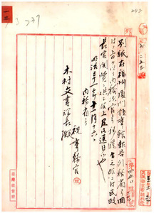本島支那形船福州入港手續告示九九號、臺灣福州間ノ航海ニ從事スル臺灣民船弊害取締方ニ付內務次官ヘ回答及地方廳稅關ヘ通達